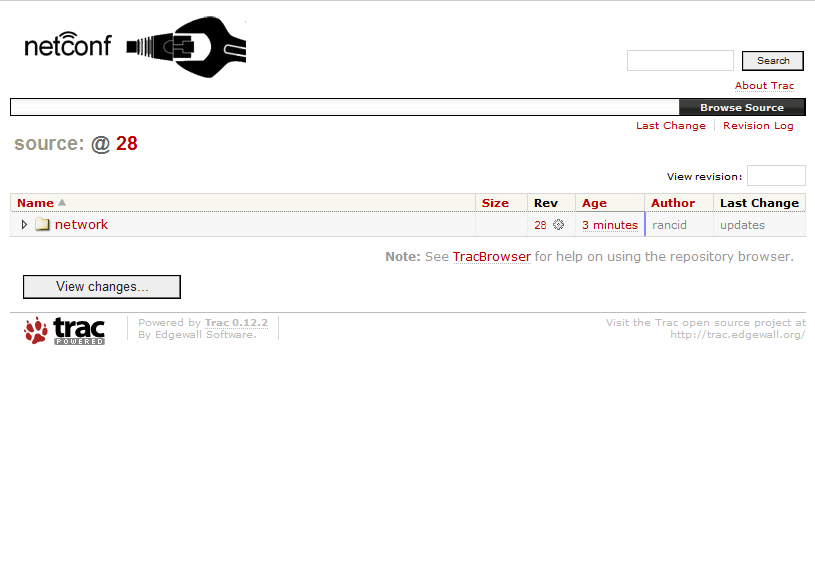 Next we will install and configure Trac as a web-based GUI to browse the device configuration stores in SVN.